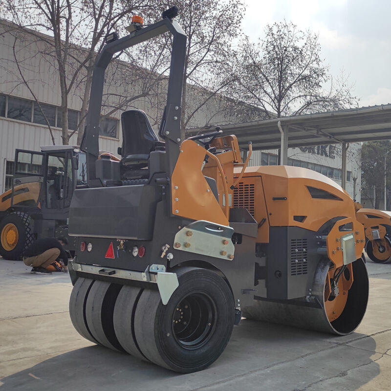 Válec s ocelovým předním koulícím se kolem a pneumatickými zadními koly využívá diferencovaný návrh „přední ocelové koulící se kolo + zadní sestava pneumatických kol“, který zohledňuje jak vibrací vyvolanou pronikací při zhutňování, tak i mírné žvýkací zhutňování pneumatikami, čímž dosahuje dvojí funkce „účinného zhutňování + jemné úpravy“. Ocelové kolo je určeno pro hluboké zhutňování podkladu silnice, pískově štěrkového polštáře, zatímco pneumatická kola jsou určena pro zhutňování asfaltové vozovky a stabilizované zeminové spodní vrstvy. Je vhodný pro nepřetržitou výstavbu „základny – povrchové vrstvy“ a pro vícestupňové operace.